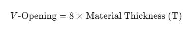 Para aço macio padrão, a regra geral para selecionar a abertura da matriz em V é: