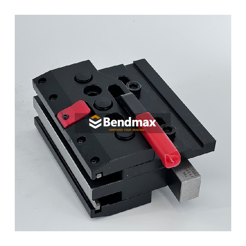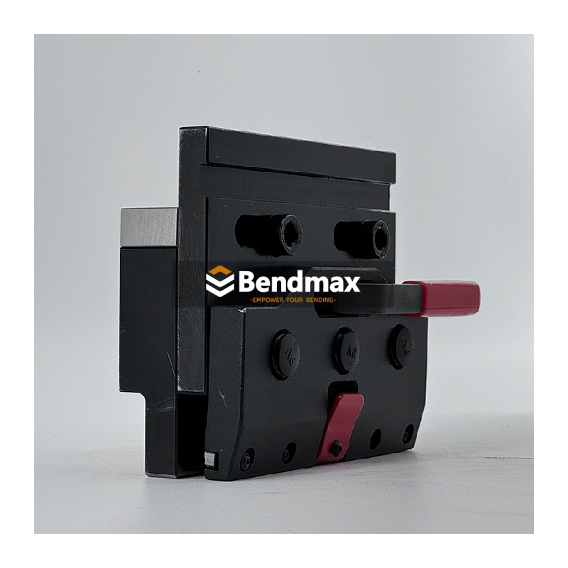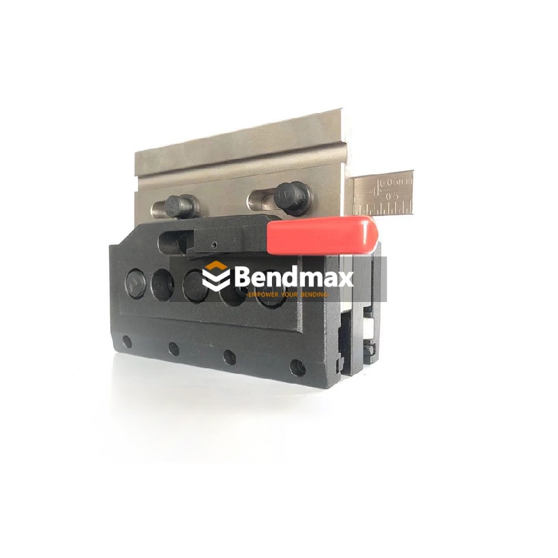 O Sistema de fixação expressa A tecnologia de fixação da Bendmax oferece a facilidade e a rapidez da ativação manual por alavanca para fixar e assentar punções de estilo europeu com agilidade. Adicionar um sistema de fixação à sua prensa dobradeira é como dar nova vida à sua máquina — proporciona funcionalidades atualizadas e renova a superfície de dobra. As fixações são uma ótima maneira de reduzir drasticamente o tempo de preparação e troca de ferramentas.