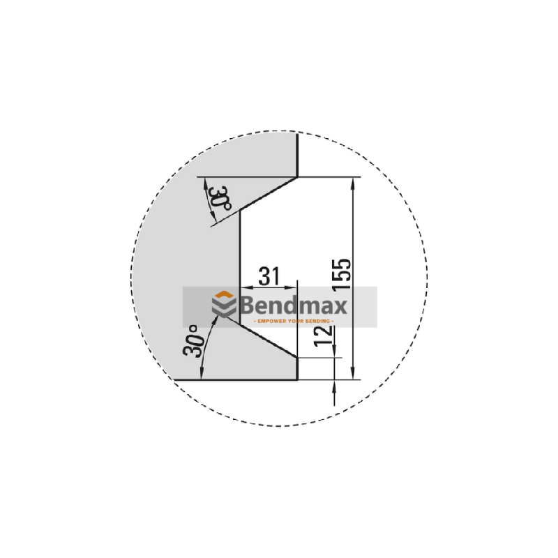 Matriz de dobra com suporte rotativo reversívelÉ um punção de precisão especializado, no estilo Bystronic, projetado para dobras em ângulos acentuados e profundos. Com um ângulo de ponta de 30° e uma altura extra de 175 mm, oferece folga excepcional para a conformação de caixas profundas e geometrias complexas. Seu raio de 1,0 mm retificado com precisão e a construção em aço 42CrMo4 temperado garantem alta precisão e durabilidade, tornando-o a ferramenta perfeita para componentes de chapa metálica complexos.